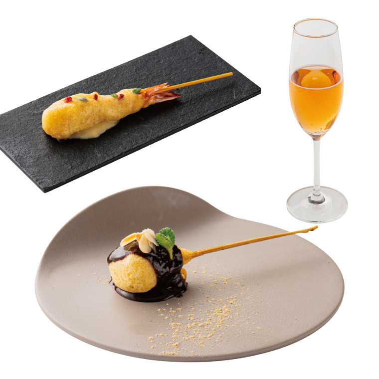 ※ドリンクはビール・ハイボール・スパークリングワイン・ジャスミン茶・オレンジジュース・グレープフルーツジュース・ノンアルスパークリングからお選びください。選べる串揚げ2本とドリンク1杯のお値打ちセット。