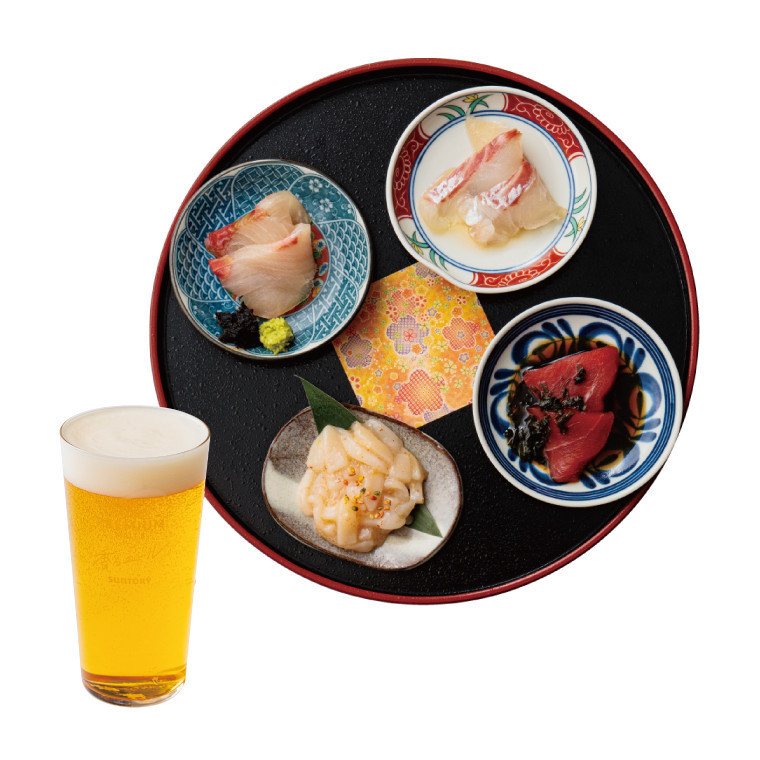 ※別途お通し代400円いただきます。生ビールとイカ明太、お刺身(ヒラス・タイ・マグロ)で呑めるほろ酔いセット。