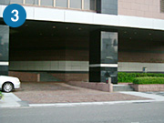 地上駐車場の入り口は、ビジネスセンタービル(1Fに西日本シティ銀行があります)の正面向かって左側にございます。